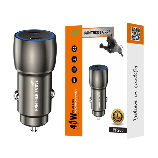 PF200 – Panther Force 40W Car Charger – Dual USB-C Ports