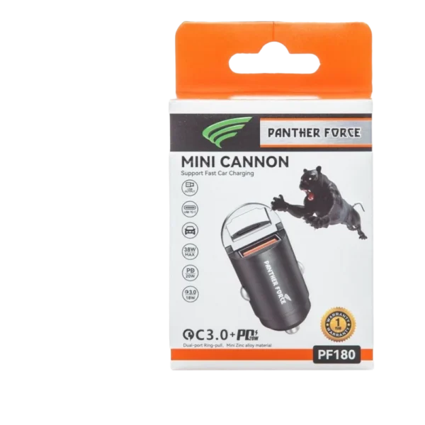 PF180 – Panther Force Mini Car Charger – Type-C + USB-A | 20W Fast Charging | Dual Ports